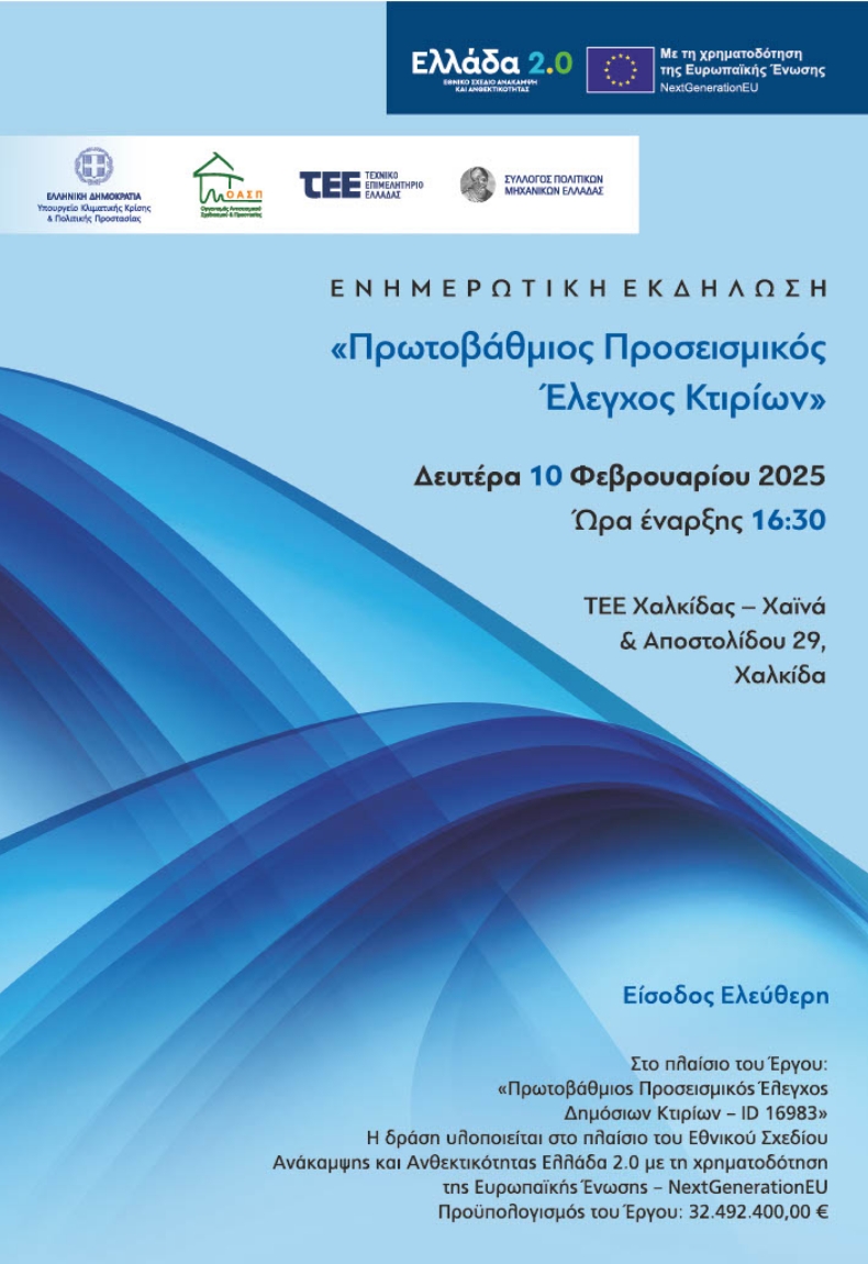 Αρχική - Δράσεις - Πρωτοβάθμιος Προσεισμικός Έλεγχος Κτιρίων Πρωτοβάθμιος Προσεισμικός Έλεγχος Κτιρίων 21 Ιανουαρίου, 202521 Ιανουαρίου, 2026 Προηγούμενο Επόμενο Search